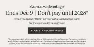 Please note, pricing at some Ashley locations is unavailable online. Update your postal code to see if pricing is available in your area or for a full list of participating stores.